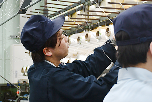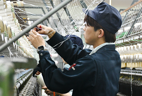 原糸を倉庫から工場内に運搬・原糸を倉庫に返却・台帳作成・伝票記入・荷造り梱包・原糸をつける・原糸片付け・ボビン巻き・製品玉揚げ・製品片付け・機械稼働・カセ・ワインダーなどが一連の仕事です。